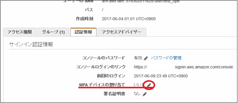 5-5 認証情報のMFAデバイスの割り当てに情報が記載されていることを確認