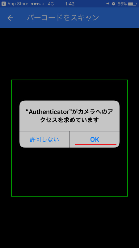 4-2 iOSの場合、アプリがスマホのカメラアクセスを求めてくるので、「OK」を押す