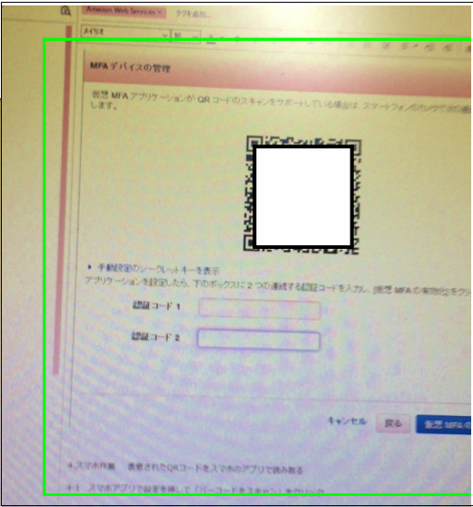 4.スマホ作業 表示のQRコードをスマホのアプリで読み取る