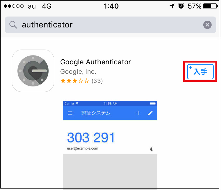 1-2 Google Authenticatorなどが検索されるので、入手をクリック(iOSの場合)