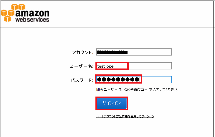※https://*******.signin.aws.amazon.com/consoleでアクセス