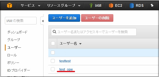 2-4 作成したユーザーが表意されるので、先ほど前回作成したユーザーをクリック
