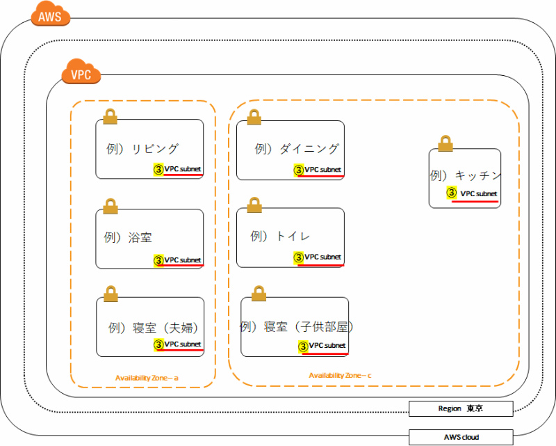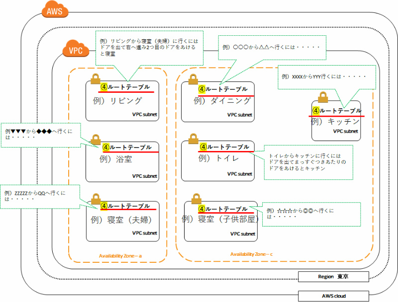 例)下記図では、7部屋(7つのsubnet)のイメージ