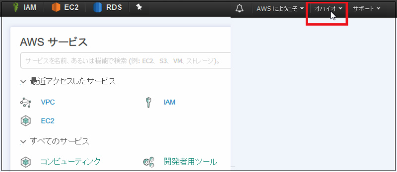 コンソールログイン後の右上の部分を確認