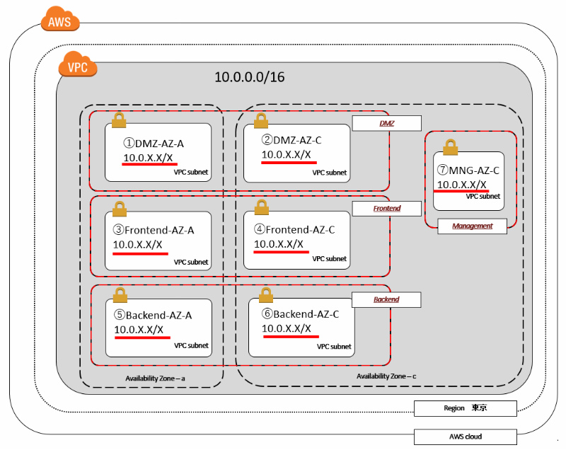 • サブネットがアベイラビリティソーン事の2つでも運用は可能だが、セキュリティの観点から複数わけたほうがよい。