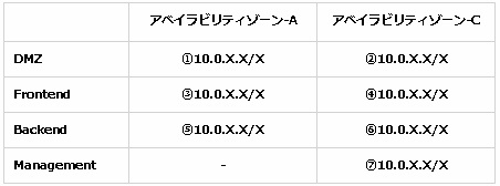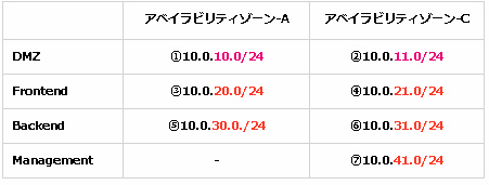 サブネットの設定一覧はこちらです。 ※準備中