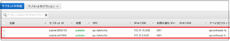 2-2.サブネット一覧が表示されます。